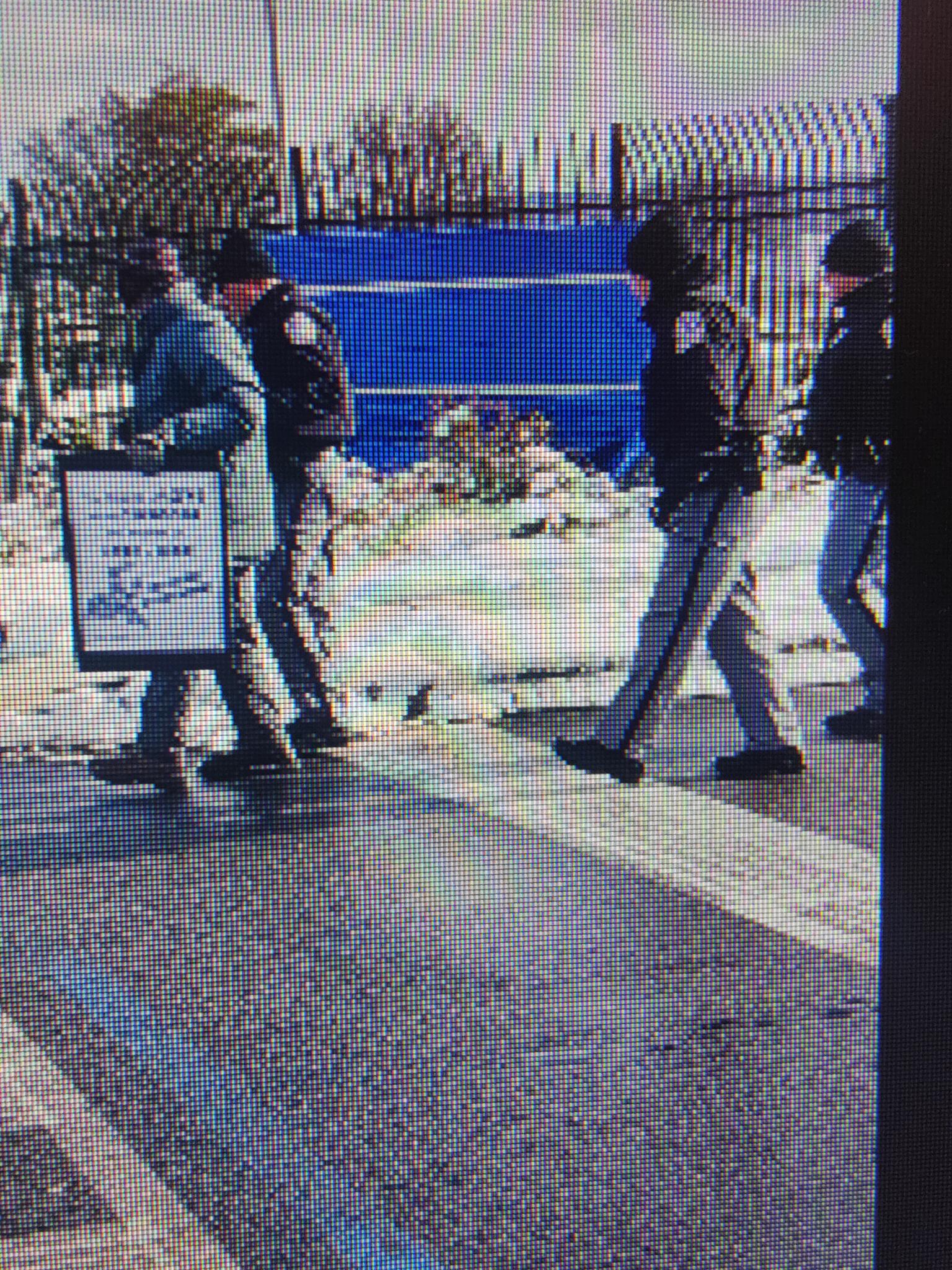 Lockheed Martin for Martin Luther King Day, once again. The site of the world’s largest war profiteer and nuclear weapons contractor. I entered their property to talk with Lockheed Martin employees concerning their deadly work, but partway there I was stopped by Lockheed Martin security. I spoke with them about Lockheed Martin’s supplying technological tools to the Department of Homeland Security (which includes Immigration and Customs Enforcement – ICE) and delivered a copy of the United Nations Treaty Banning Nuclear Weapons to Lockheed Martin security. When I attempted to go further, I was arrested for trespassing.